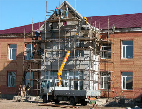 Установка лесов для устройства навесных вентилируемых фасадов, 2011 год